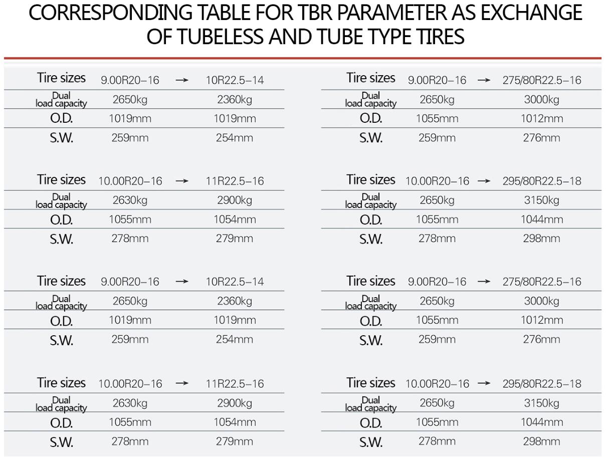 TBR SIZE AS EXCHANGE OF TUBELESS AND TUBE TYPE TIRE